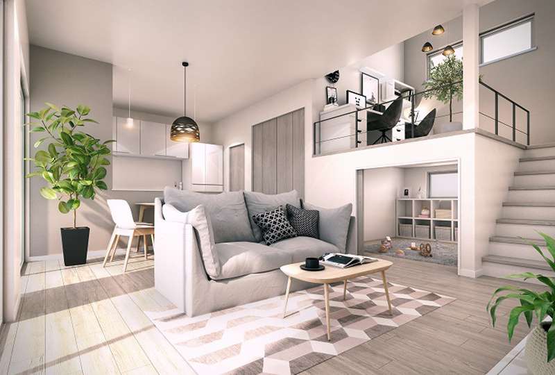 都市型シンプルモダンデザインが印象的なスキップフロアの家。スキップフロアは子どもの遊び場やワーキングスペースとして幅広く活用することができます。スキップ下には収納などにも使えるスペースを設け、無駄のない間取りを実現。